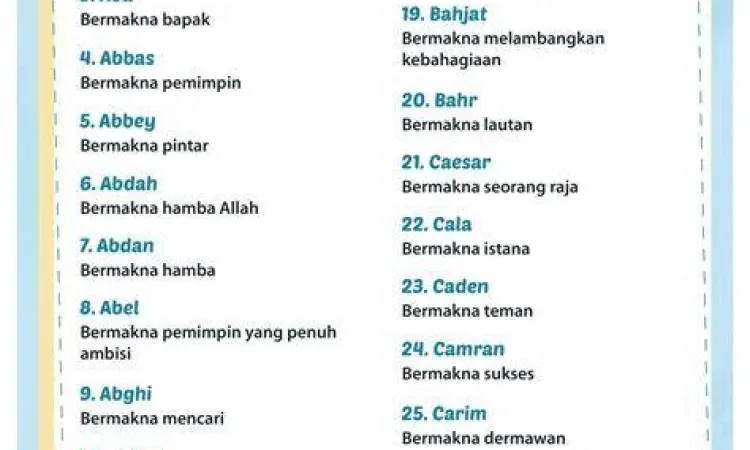 | Muhammad | Arab | Yang Terpuji | Memiliki akhlak mulia dan jujur |