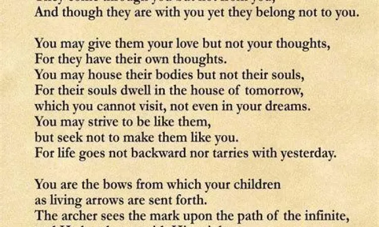 Banyak orang tua yang secara tidak sadar memaksakan impian dan ambisi pribadi kepada anak-anak mereka. Namun, Gibran mengingatkan kita bahwa anak adalah milik kehidupan itu sendiri. Dalam bait-bait yang indah, ia menjelaskan bahwa meskipun anak-anak datang melalui orang tua, mereka tidak berasal dari orang tua. Kesadaran ini adalah langkah pertama menuju pengasuhan yang sehat dan penuh penghormatan terhadap martabat manusia sejak usia dini.